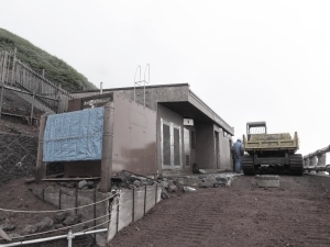 ここまでの説明を読んでも、「厳冬期は無理でも開山直前や閉山直後なら行けるんじゃないか」と考える人がいるかも知れません。しかし、開山前後の時期は、山小屋の補修・改修が行われたり、導流堤などの設備を工事したりするなど、富士山の各施設のメンテナンスのために必要な貴重な期間です。厳冬期以外の限られた期間に、天気も見ながら予定の工事をやり遂げなければなりません。山小屋前の登山道が塞がれ、資材を運ぶ車両が行き交う中で登山者が登って来る行為はどうでしょう? 作業の支障となり、富士山に「迷惑」となります。