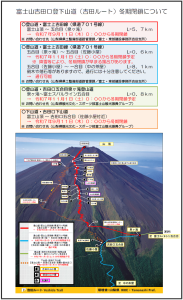富士山においては、万全な準備をしない登山者の夏山期間以外の登山禁止をはじめとしたルールが決められていますので、これらのルールを遵守する様にお願いします。主な内容は以下のとおりです。