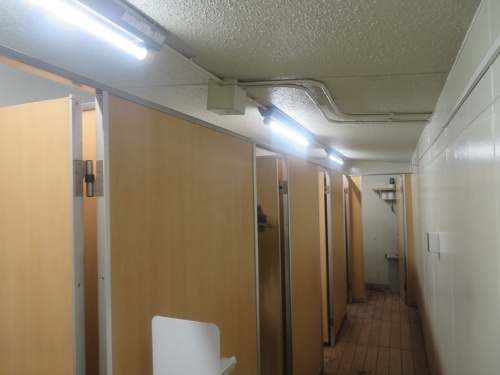 女子トイレ。奥の個室が空いているか分かりにくい。