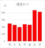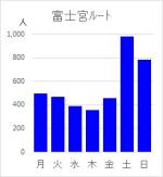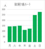グラフは2018~2021年、閉山だった2020年を除く3ヶ年の開山期の曜日別の一日辺りの登山者数の平均(*1)です。これを見るとどのルートも週末に登山者が集中しているのが一目瞭然です。(*1…欠測日を除いて算出)