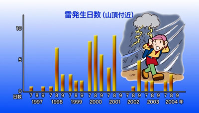 - 夏の富士山では、雷が発生しやすく、天候の急変と雷の発生が続く日も少なくありません。